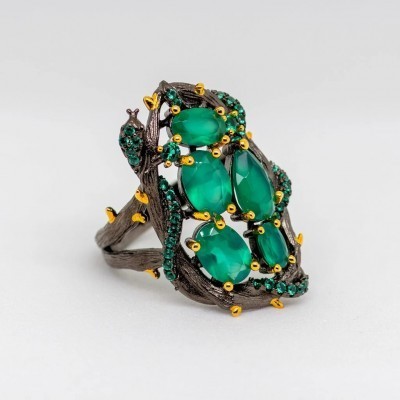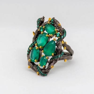 الرئيسية > vestir > Extrañar > GEMS BALLET Natural Green Agate Gemstone Rings 925 Sterling Silver Handmade Hollow Element Ring for(
