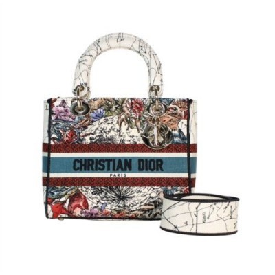 CHRISTIAN DIOR Medium Lady D-Lite Tote Shoulder Bag, 8 X 8.5 X 9