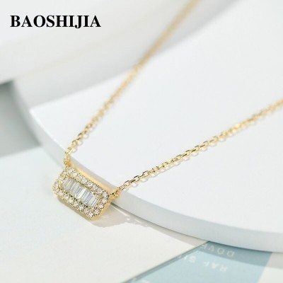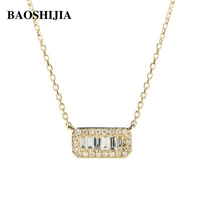 BAOSHIJIA Solid 18K Yellow Gold Natural Diamond Necklace Delicate Pendant Clavicle Chain Womens High