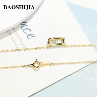 الرئيسية > mirar > otro > BAOSHIJIA Solid 18K Yellow Gold Natural Diamond Necklace Delicate Pendant Clavicle Chain Womens High