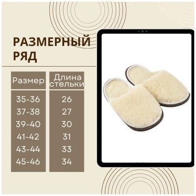 Тапочки из овечьей шерсти на войлочной подошве 41-42