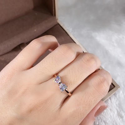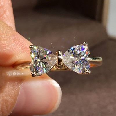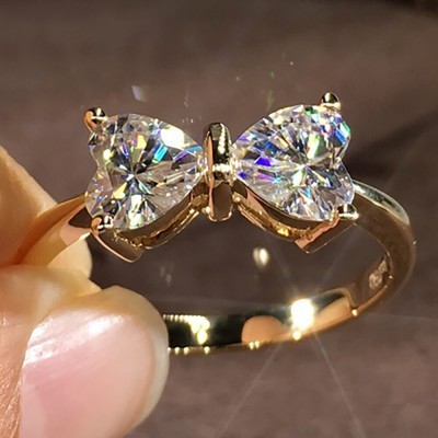 18K Au750 Gold Women Ring Moissanite Diamonds Heart Bowknot Elegant Wedding Party Engagement Anniver