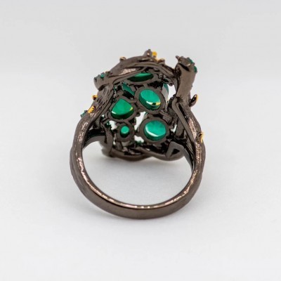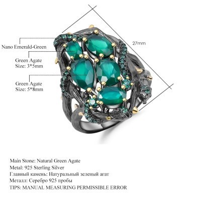 الرئيسية > vestir > Extrañar > GEMS BALLET Natural Green Agate Gemstone Rings 925 Sterling Silver Handmade Hollow Element Ring for(