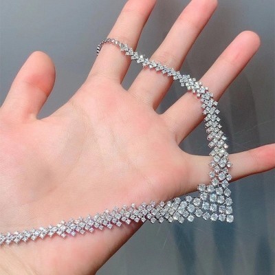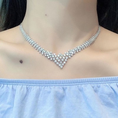 الرئيسية > LUOWEND 100% Solid 18K White Gold Pendant Necklace Real Natural Diamond Neckalce Luxury V Shape Chai