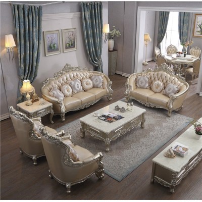 الرئيسية > мебель > Комбинированный кожаный диван в европейском стиле Роскошная вилла Размер гостиной из массива дерева